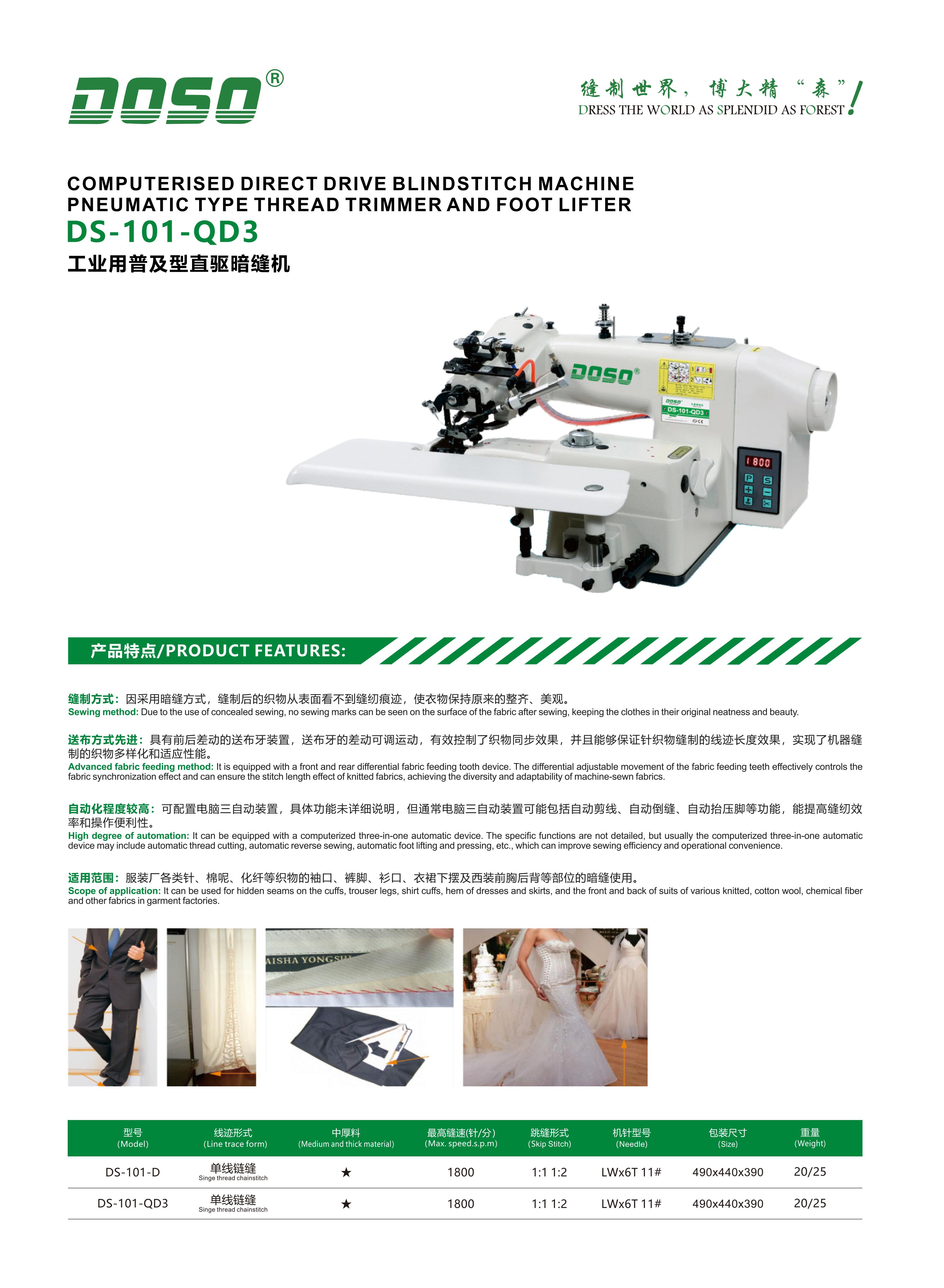 COMPUTERIZED DIRECT DRIVE BLINDSTITCH MACHINE PNEUMATIC TYPE THREAD TRIMMER AND FOOT LIFTER
